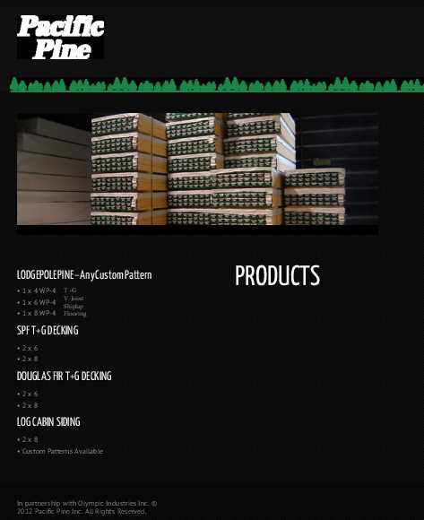 Products PDFThe Pacific Pine collection from RA Green Lumber is available in siding (pattern stock: shiplap, log cabin, and v-groove paneling) and decking (tongue-and-groove and v-joint).